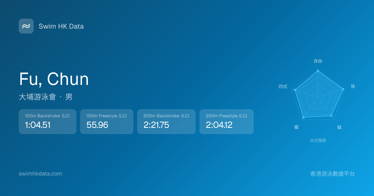 此圖表根據你所有比賽成績計算,顯示你在各泳式的相對強弱,僅供參考。繼續努力,每一次練習都會讓你更快更強!💪