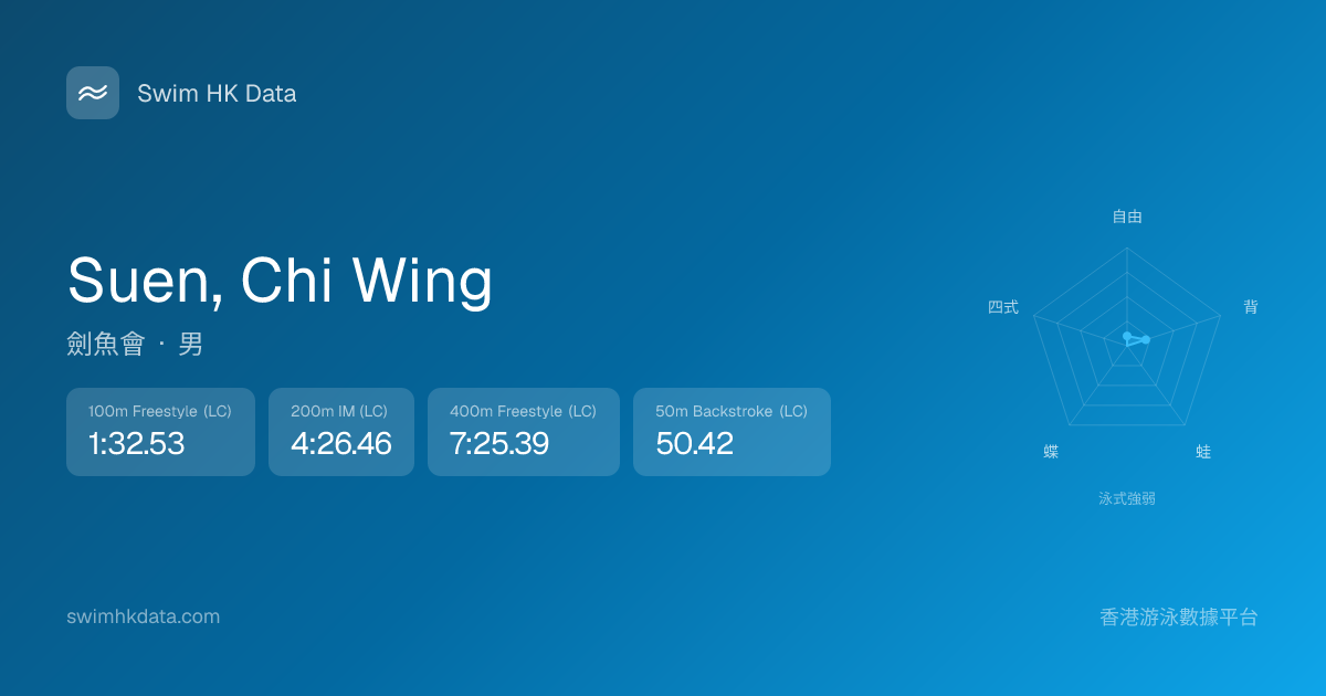 此圖表根據你所有比賽成績計算,顯示你在各泳式的相對強弱,僅供參考。繼續努力,每一次練習都會讓你更快更強!💪