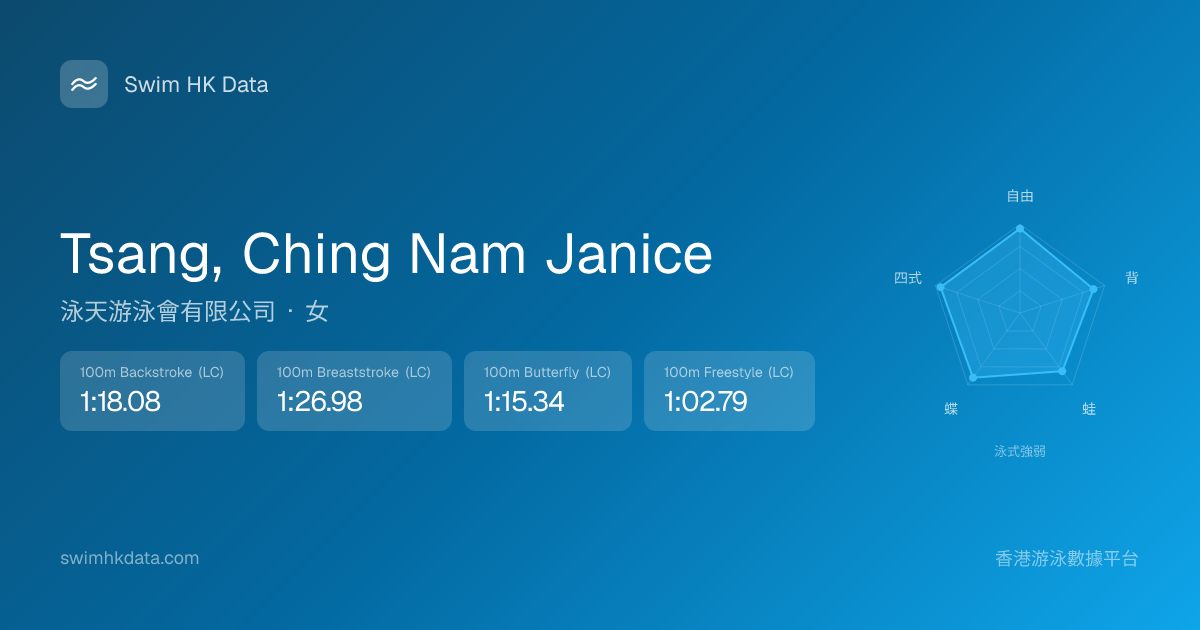此圖表根據你所有比賽成績計算,顯示你在各泳式的相對強弱,僅供參考。繼續努力,每一次練習都會讓你更快更強!💪