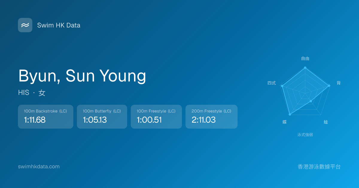 此圖表根據你所有比賽成績計算,顯示你在各泳式的相對強弱,僅供參考。繼續努力,每一次練習都會讓你更快更強!💪