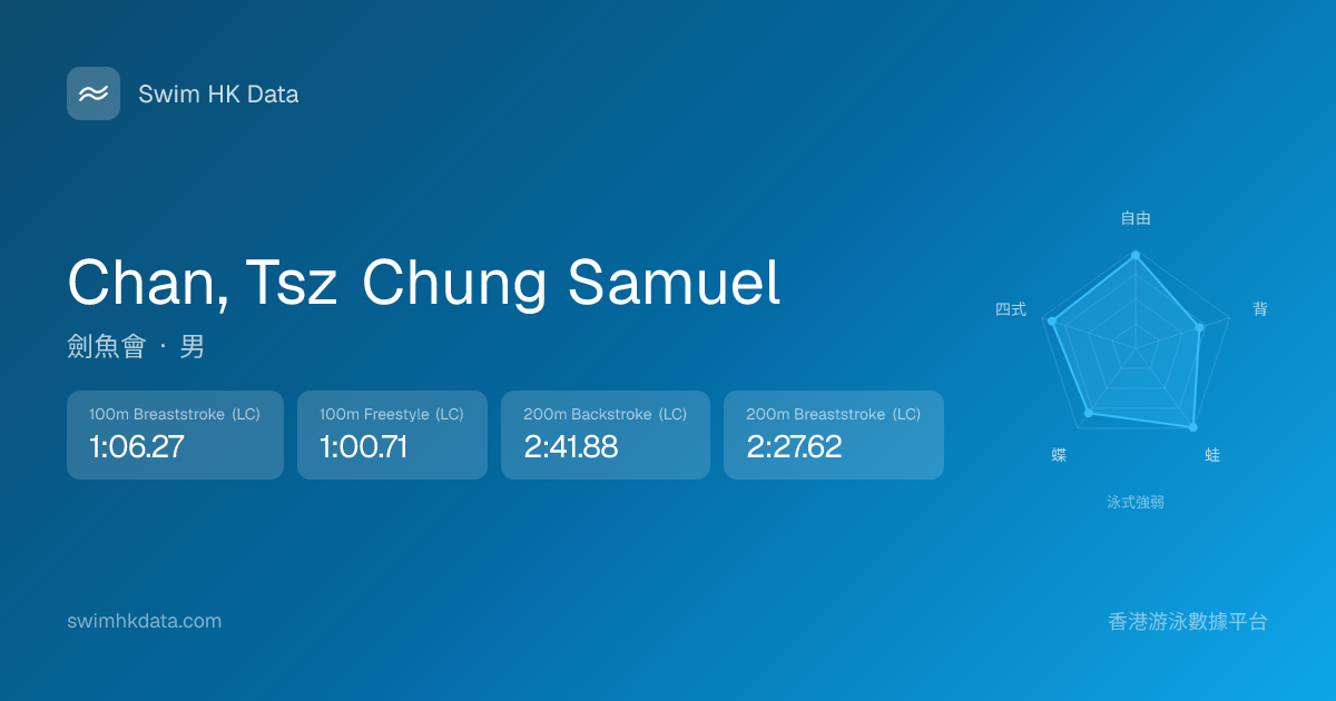 此圖表根據你所有比賽成績計算,顯示你在各泳式的相對強弱,僅供參考。繼續努力,每一次練習都會讓你更快更強!💪