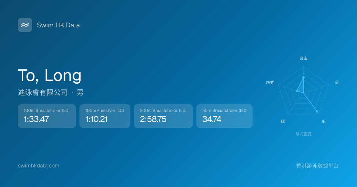 此圖表根據你所有比賽成績計算,顯示你在各泳式的相對強弱,僅供參考。繼續努力,每一次練習都會讓你更快更強!💪