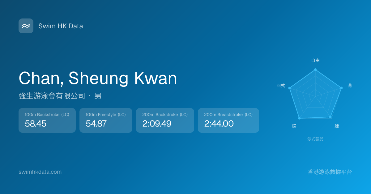 此圖表根據你所有比賽成績計算,顯示你在各泳式的相對強弱,僅供參考。繼續努力,每一次練習都會讓你更快更強!💪
