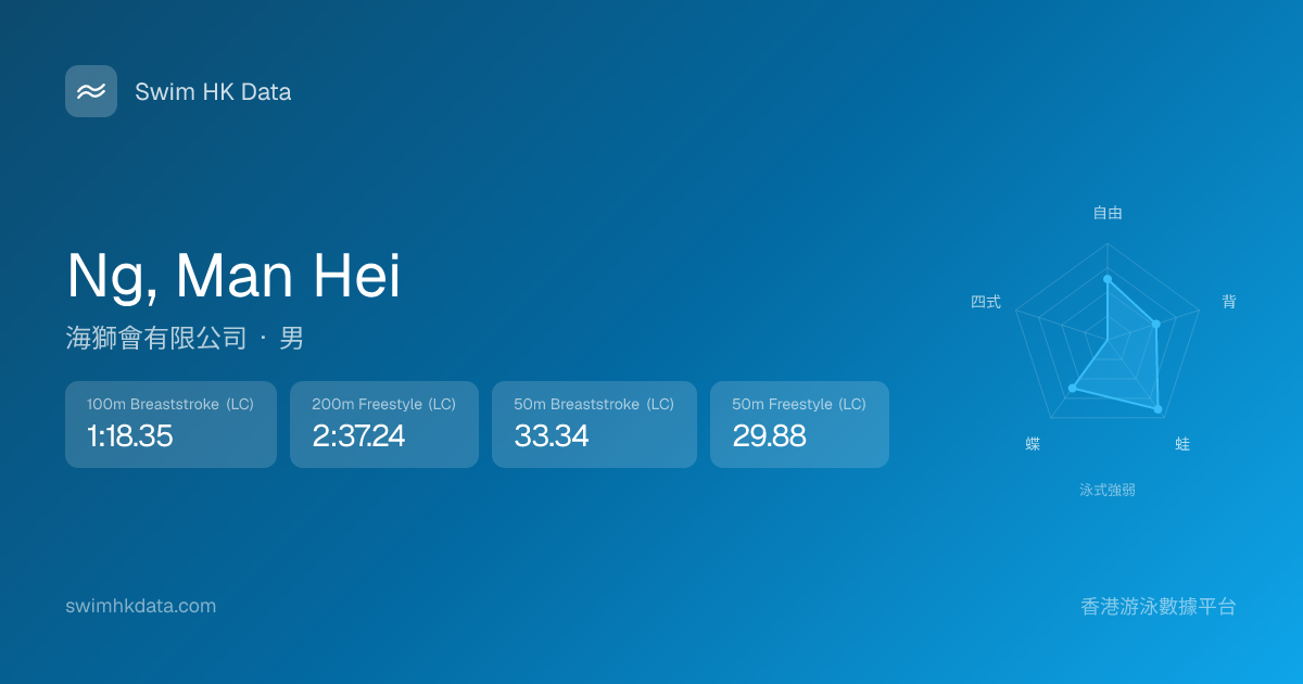 此圖表根據你所有比賽成績計算,顯示你在各泳式的相對強弱,僅供參考。繼續努力,每一次練習都會讓你更快更強!💪