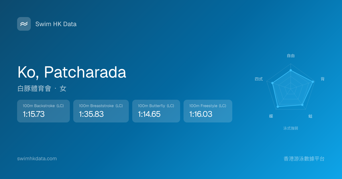 此圖表根據你所有比賽成績計算,顯示你在各泳式的相對強弱,僅供參考。繼續努力,每一次練習都會讓你更快更強!💪