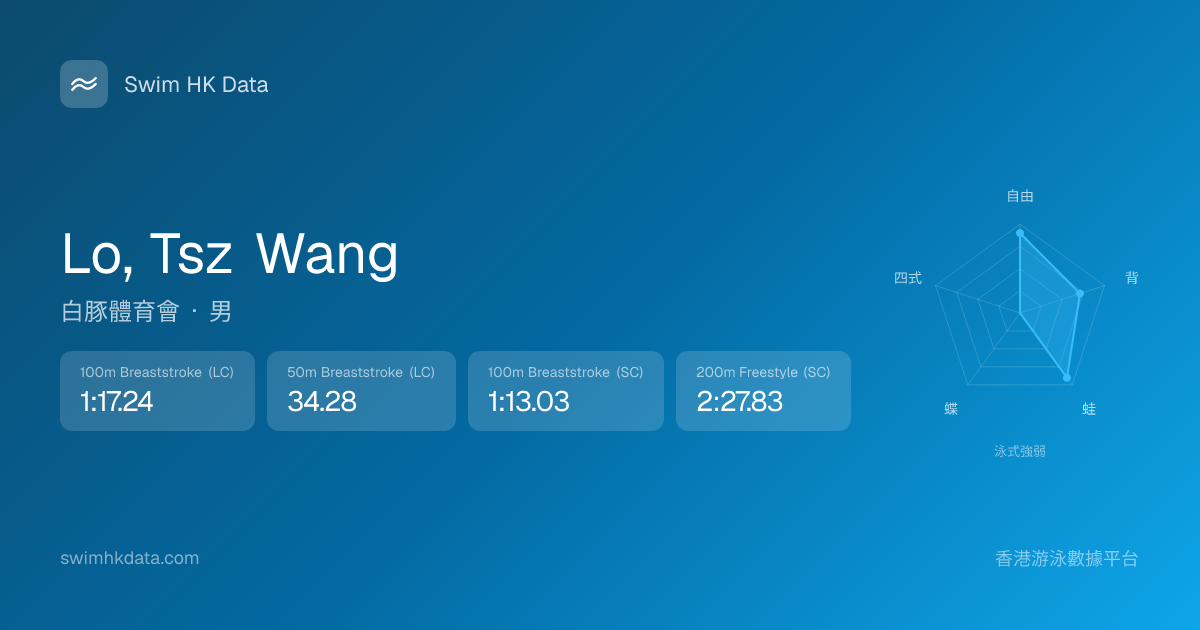 此圖表根據你所有比賽成績計算,顯示你在各泳式的相對強弱,僅供參考。繼續努力,每一次練習都會讓你更快更強!💪