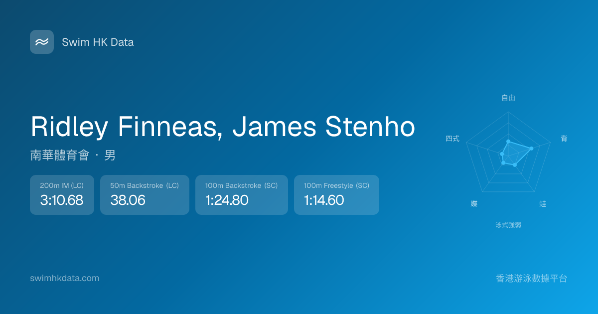 此圖表根據你所有比賽成績計算,顯示你在各泳式的相對強弱,僅供參考。繼續努力,每一次練習都會讓你更快更強!💪