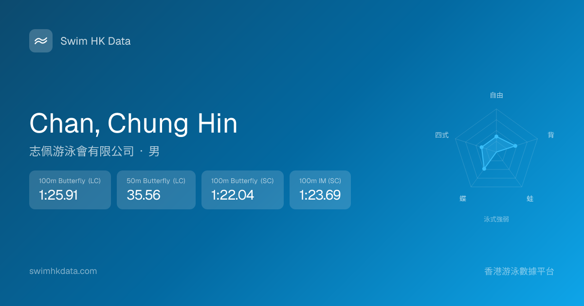 此圖表根據你所有比賽成績計算,顯示你在各泳式的相對強弱,僅供參考。繼續努力,每一次練習都會讓你更快更強!💪