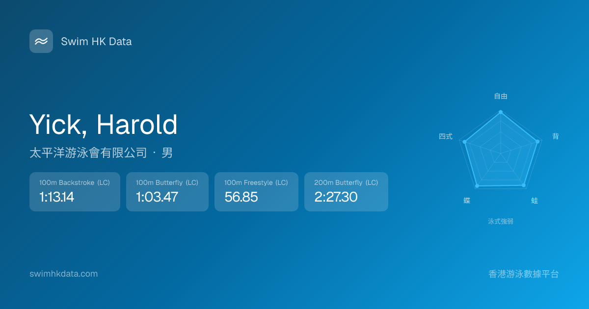 此圖表根據你所有比賽成績計算,顯示你在各泳式的相對強弱,僅供參考。繼續努力,每一次練習都會讓你更快更強!💪