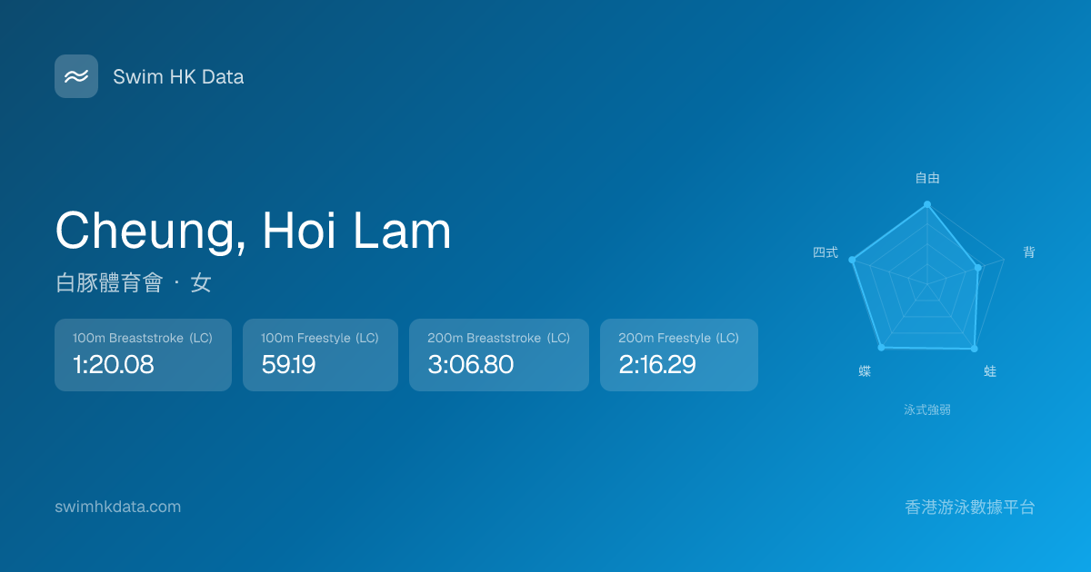 此圖表根據你所有比賽成績計算,顯示你在各泳式的相對強弱,僅供參考。繼續努力,每一次練習都會讓你更快更強!💪