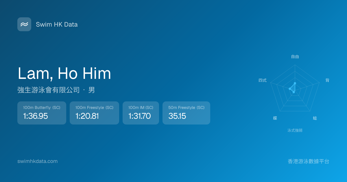 此圖表根據你所有比賽成績計算,顯示你在各泳式的相對強弱,僅供參考。繼續努力,每一次練習都會讓你更快更強!💪