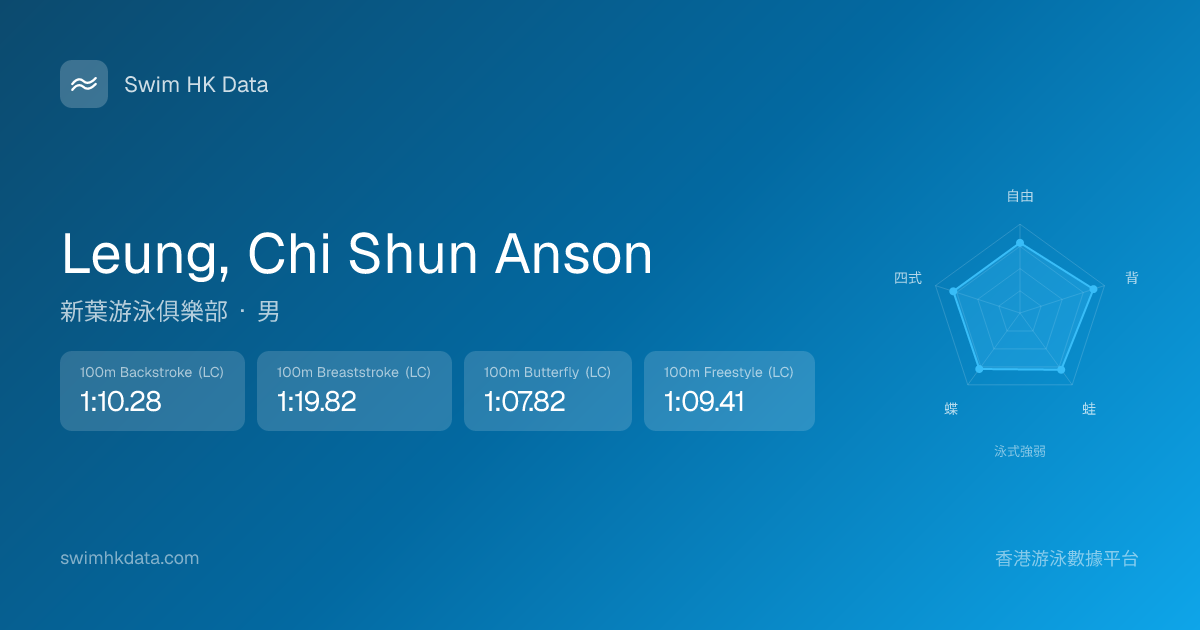 此圖表根據你所有比賽成績計算,顯示你在各泳式的相對強弱,僅供參考。繼續努力,每一次練習都會讓你更快更強!💪