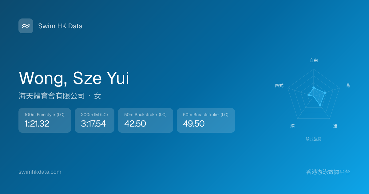 此圖表根據你所有比賽成績計算,顯示你在各泳式的相對強弱,僅供參考。繼續努力,每一次練習都會讓你更快更強!💪