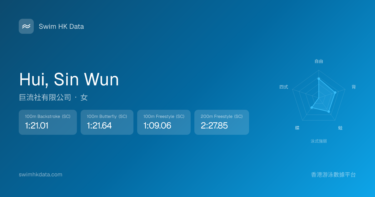 此圖表根據你所有比賽成績計算,顯示你在各泳式的相對強弱,僅供參考。繼續努力,每一次練習都會讓你更快更強!💪
