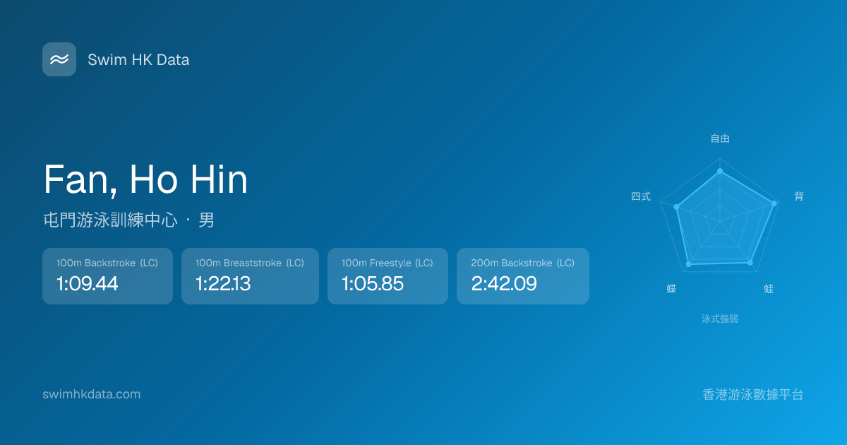此圖表根據你所有比賽成績計算,顯示你在各泳式的相對強弱,僅供參考。繼續努力,每一次練習都會讓你更快更強!💪