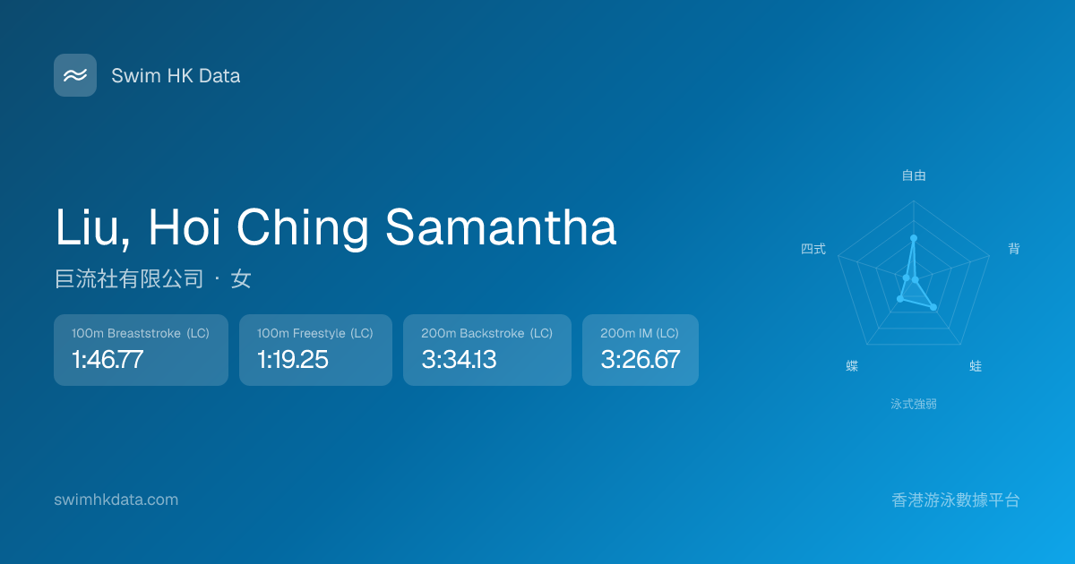 此圖表根據你所有比賽成績計算,顯示你在各泳式的相對強弱,僅供參考。繼續努力,每一次練習都會讓你更快更強!💪
