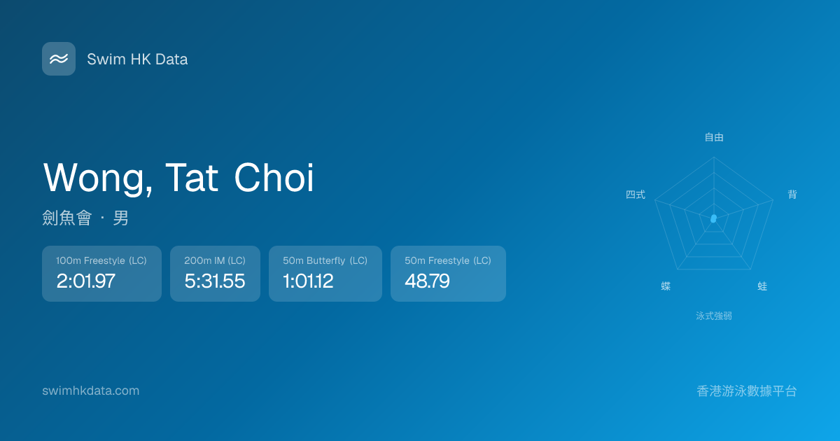 此圖表根據你所有比賽成績計算,顯示你在各泳式的相對強弱,僅供參考。繼續努力,每一次練習都會讓你更快更強!💪