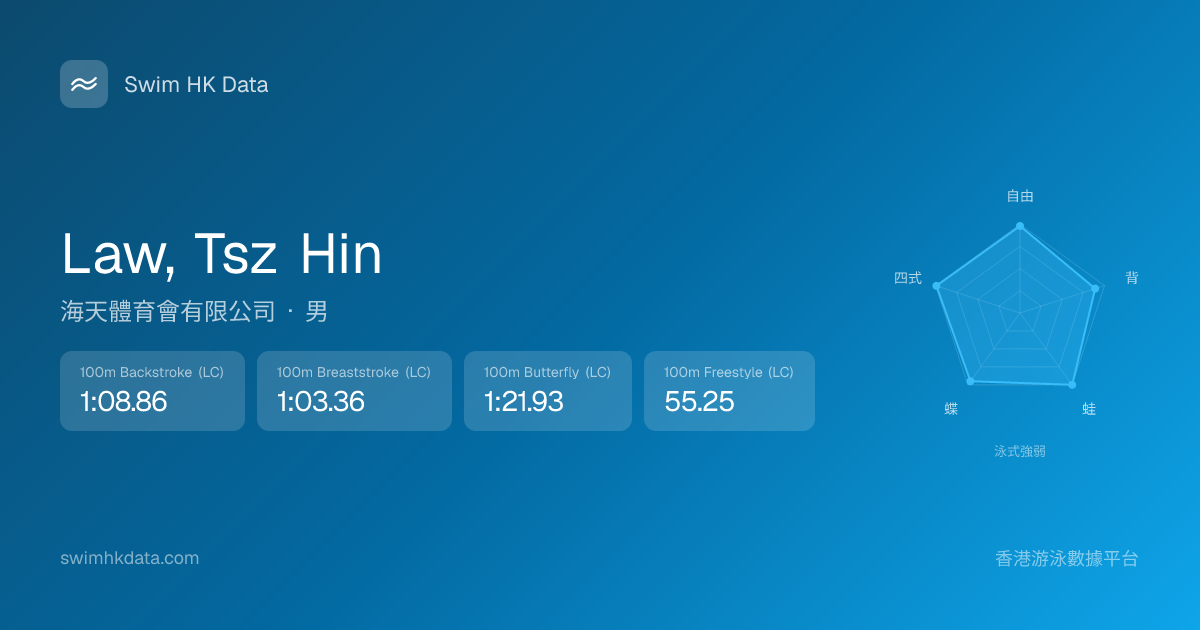 此圖表根據你所有比賽成績計算,顯示你在各泳式的相對強弱,僅供參考。繼續努力,每一次練習都會讓你更快更強!💪