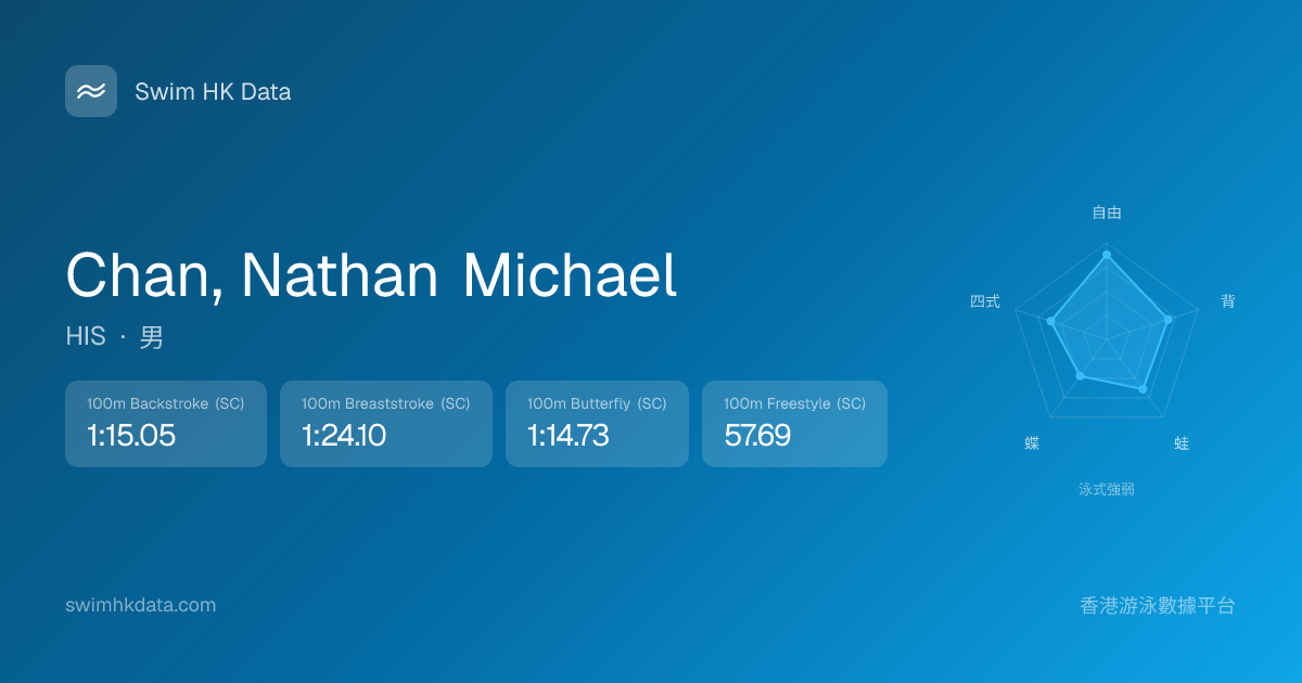 此圖表根據你所有比賽成績計算,顯示你在各泳式的相對強弱,僅供參考。繼續努力,每一次練習都會讓你更快更強!💪
