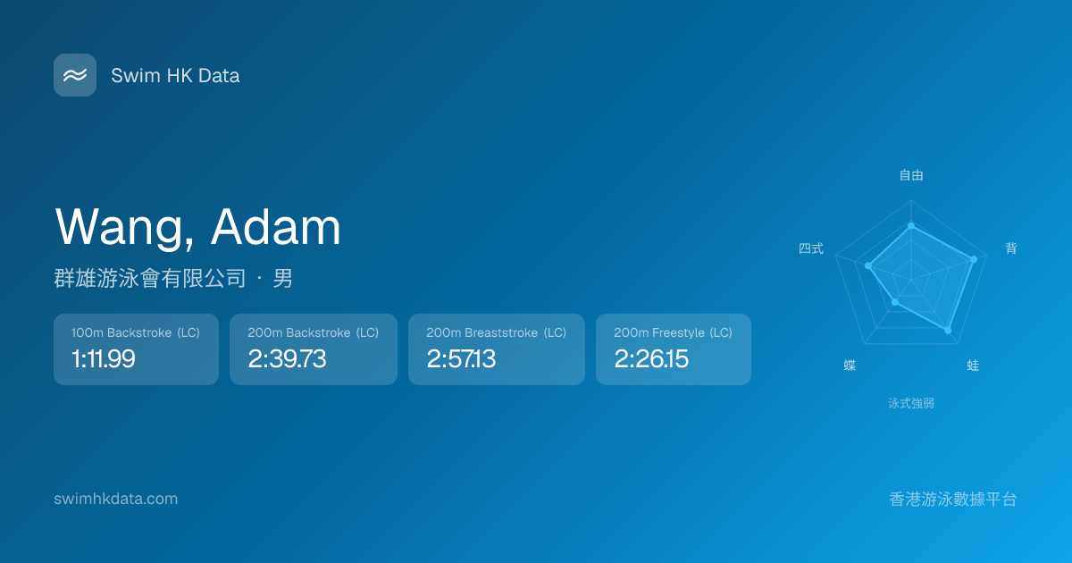 此圖表根據你所有比賽成績計算,顯示你在各泳式的相對強弱,僅供參考。繼續努力,每一次練習都會讓你更快更強!💪