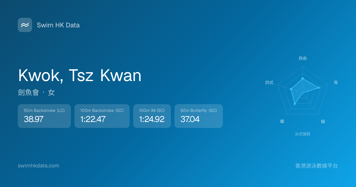 此圖表根據你所有比賽成績計算,顯示你在各泳式的相對強弱,僅供參考。繼續努力,每一次練習都會讓你更快更強!💪