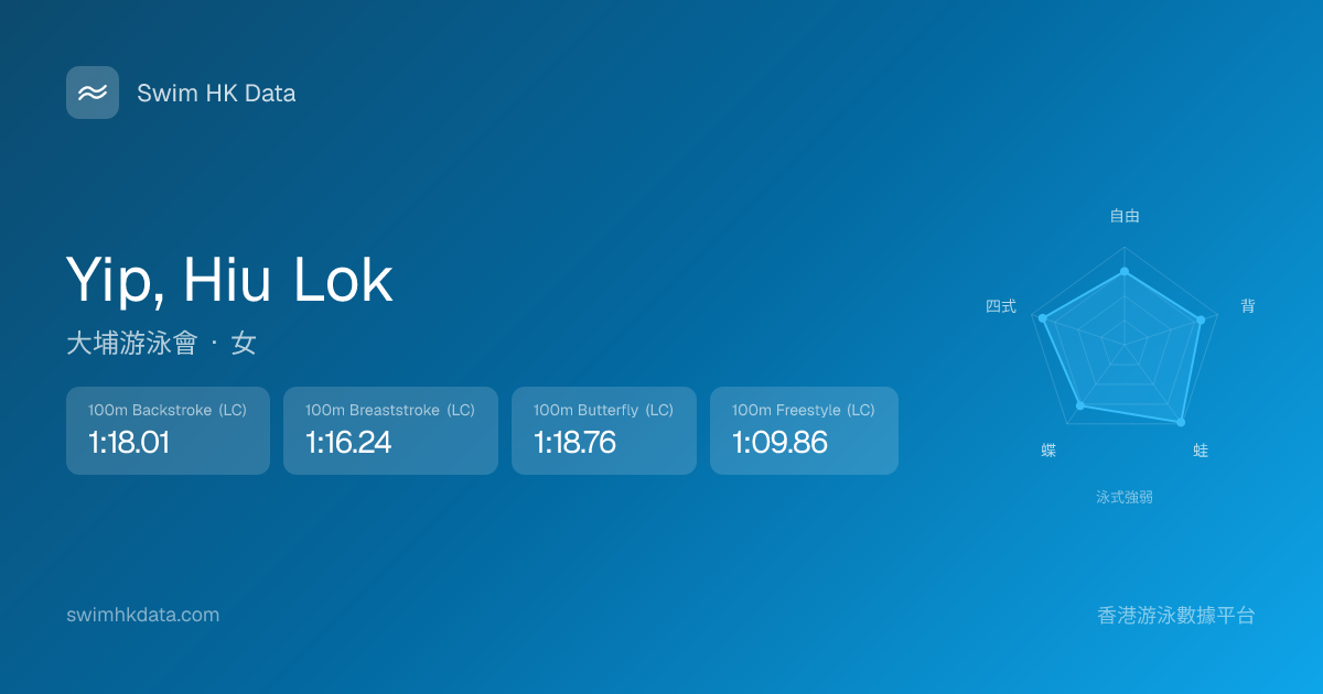 此圖表根據你所有比賽成績計算,顯示你在各泳式的相對強弱,僅供參考。繼續努力,每一次練習都會讓你更快更強!💪