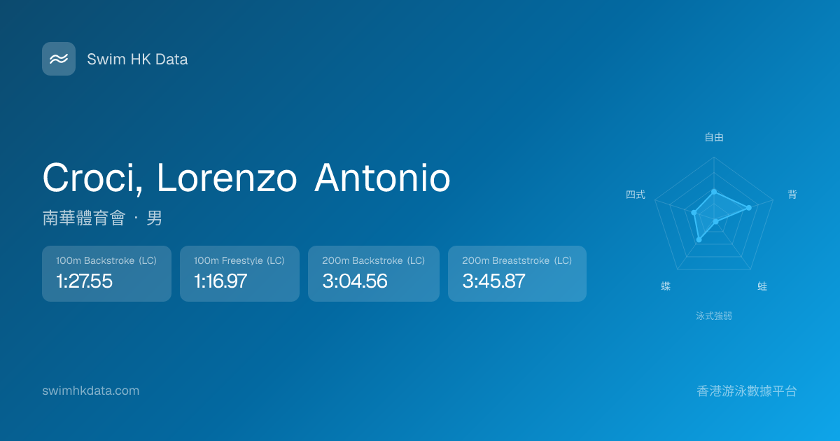 此圖表根據你所有比賽成績計算,顯示你在各泳式的相對強弱,僅供參考。繼續努力,每一次練習都會讓你更快更強!💪