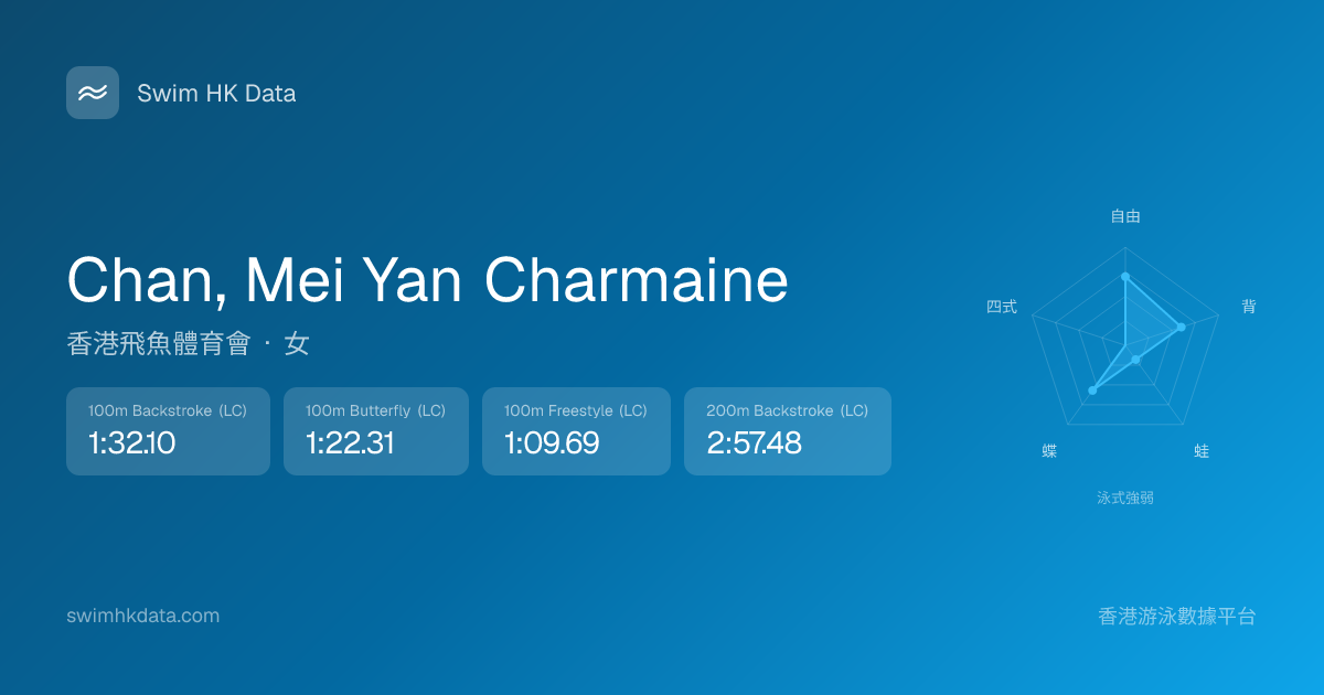 此圖表根據你所有比賽成績計算,顯示你在各泳式的相對強弱,僅供參考。繼續努力,每一次練習都會讓你更快更強!💪