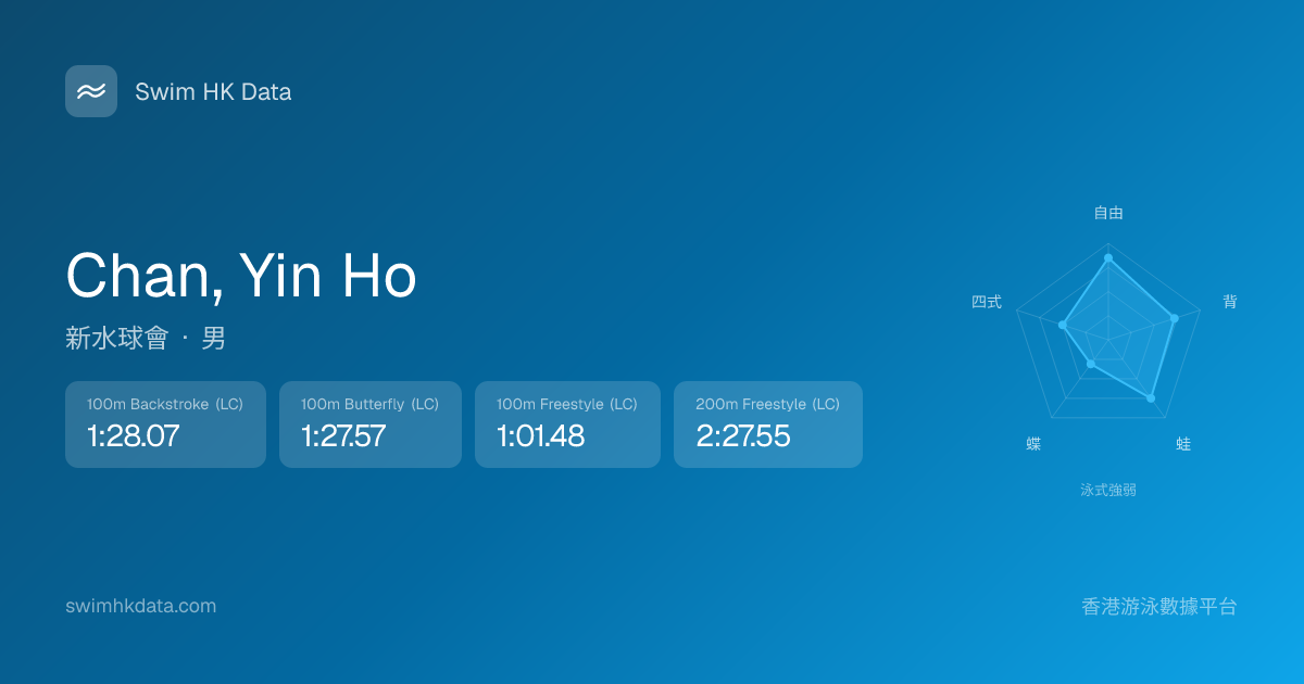 此圖表根據你所有比賽成績計算,顯示你在各泳式的相對強弱,僅供參考。繼續努力,每一次練習都會讓你更快更強!💪