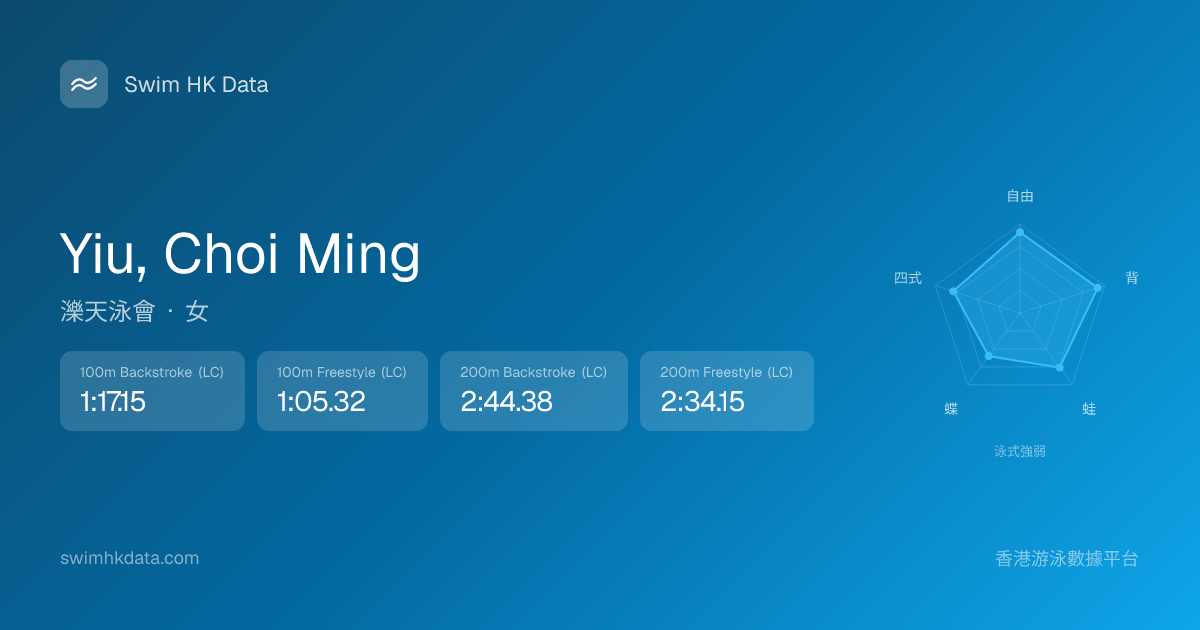 此圖表根據你所有比賽成績計算,顯示你在各泳式的相對強弱,僅供參考。繼續努力,每一次練習都會讓你更快更強!💪