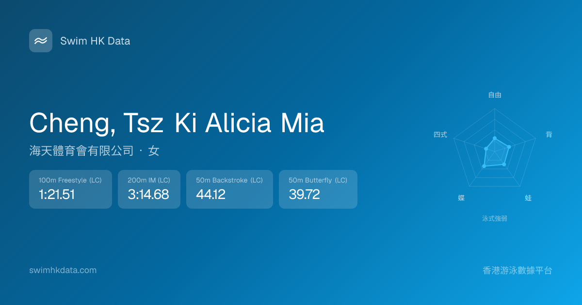 此圖表根據你所有比賽成績計算,顯示你在各泳式的相對強弱,僅供參考。繼續努力,每一次練習都會讓你更快更強!💪