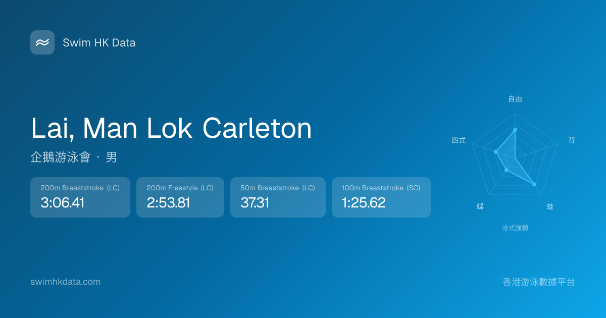 此圖表根據你所有比賽成績計算,顯示你在各泳式的相對強弱,僅供參考。繼續努力,每一次練習都會讓你更快更強!💪