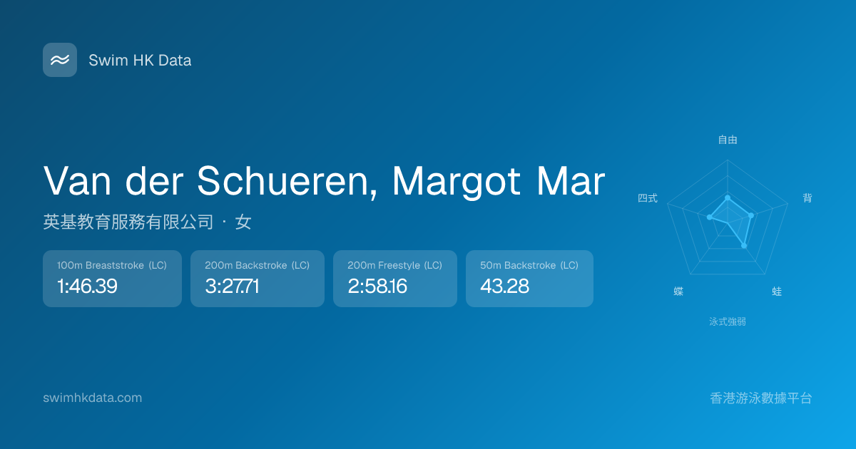 此圖表根據你所有比賽成績計算,顯示你在各泳式的相對強弱,僅供參考。繼續努力,每一次練習都會讓你更快更強!💪