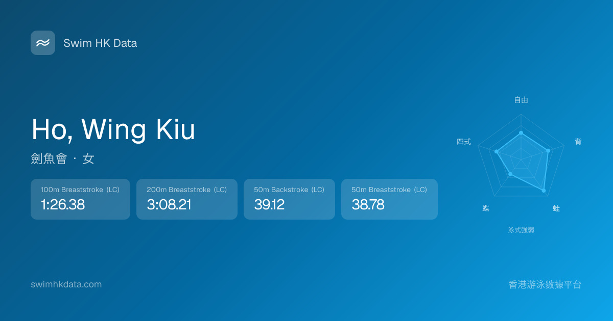 此圖表根據你所有比賽成績計算,顯示你在各泳式的相對強弱,僅供參考。繼續努力,每一次練習都會讓你更快更強!💪