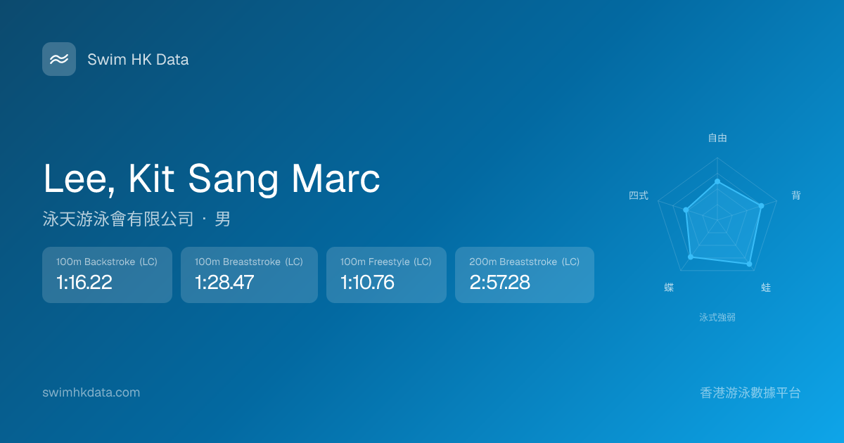 此圖表根據你所有比賽成績計算,顯示你在各泳式的相對強弱,僅供參考。繼續努力,每一次練習都會讓你更快更強!💪