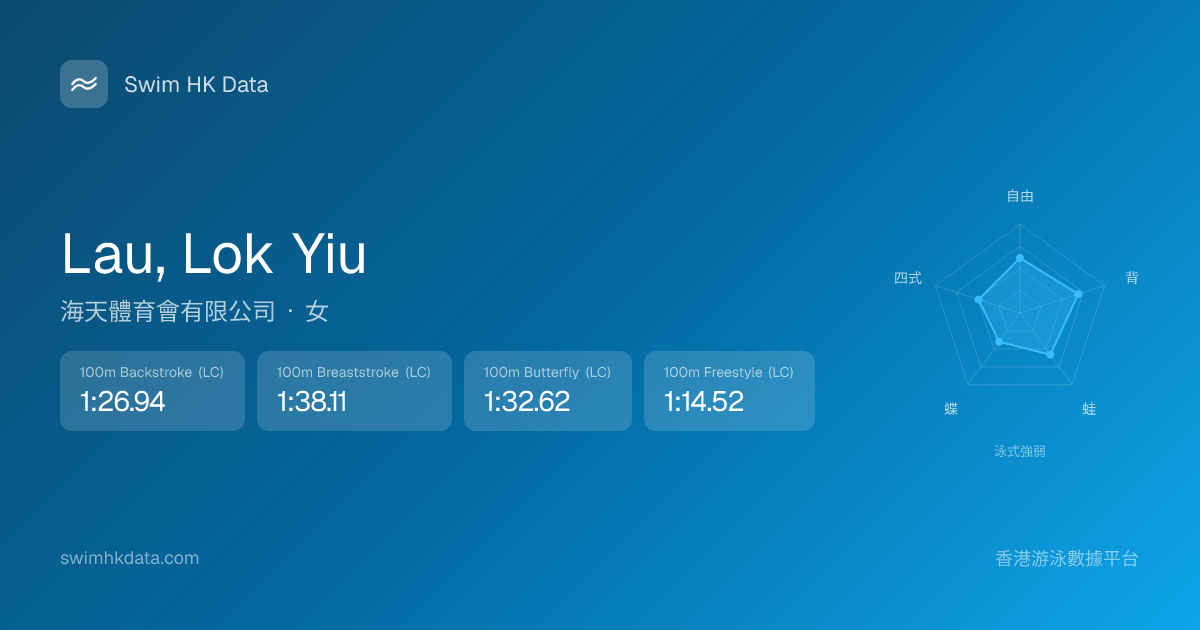 此圖表根據你所有比賽成績計算,顯示你在各泳式的相對強弱,僅供參考。繼續努力,每一次練習都會讓你更快更強!💪