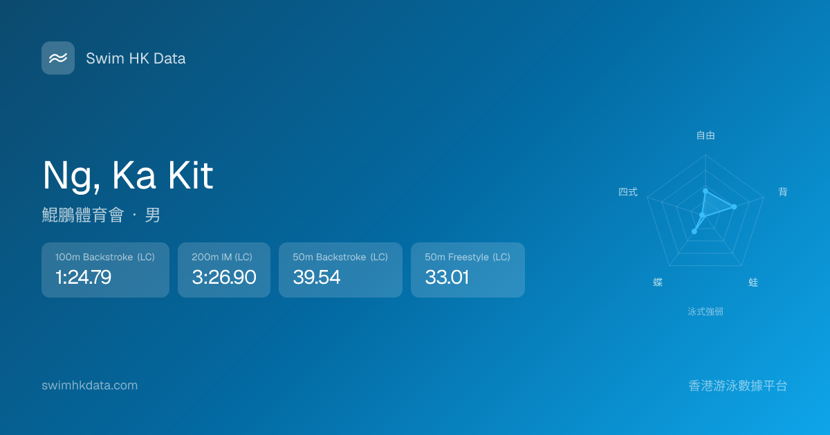 此圖表根據你所有比賽成績計算,顯示你在各泳式的相對強弱,僅供參考。繼續努力,每一次練習都會讓你更快更強!💪