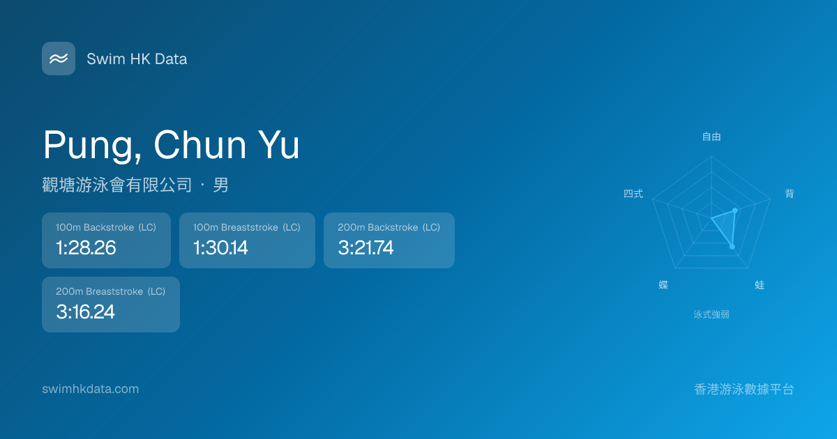 此圖表根據你所有比賽成績計算,顯示你在各泳式的相對強弱,僅供參考。繼續努力,每一次練習都會讓你更快更強!💪