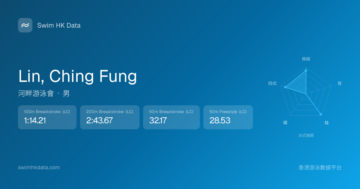 此圖表根據你所有比賽成績計算,顯示你在各泳式的相對強弱,僅供參考。繼續努力,每一次練習都會讓你更快更強!💪