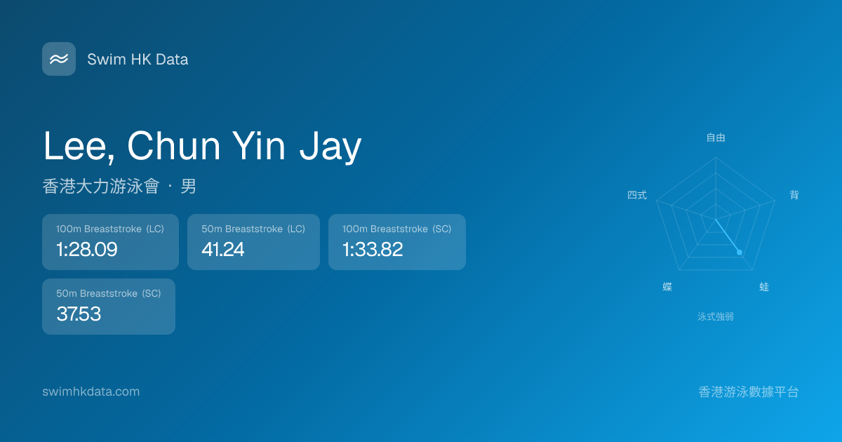 此圖表根據你所有比賽成績計算,顯示你在各泳式的相對強弱,僅供參考。繼續努力,每一次練習都會讓你更快更強!💪