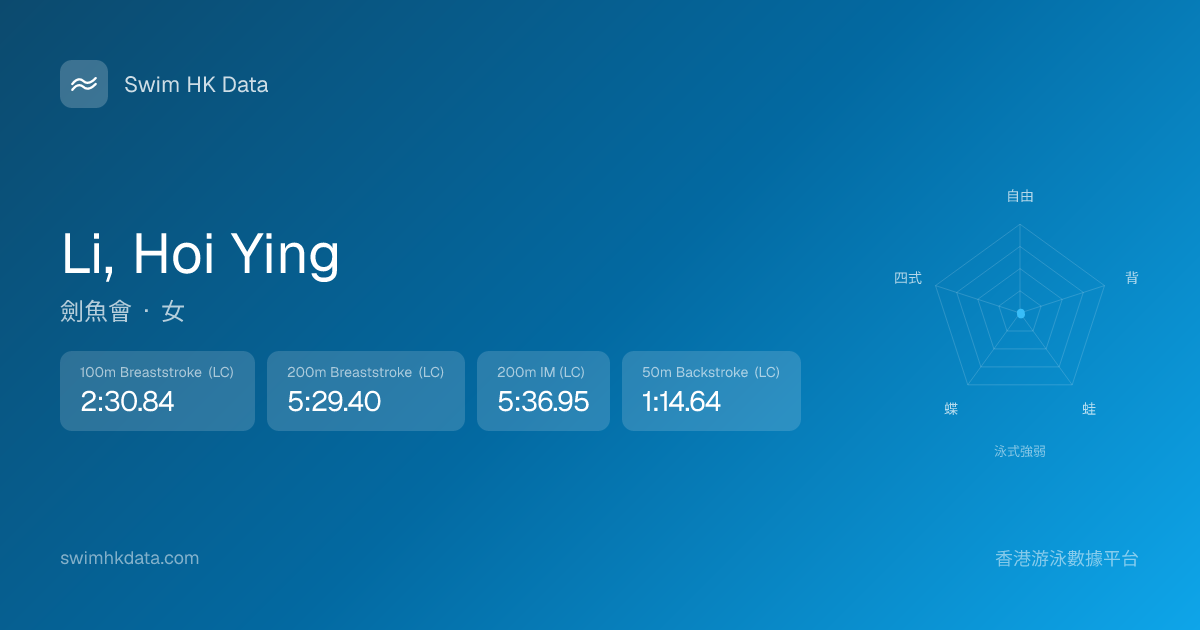 此圖表根據你所有比賽成績計算,顯示你在各泳式的相對強弱,僅供參考。繼續努力,每一次練習都會讓你更快更強!💪
