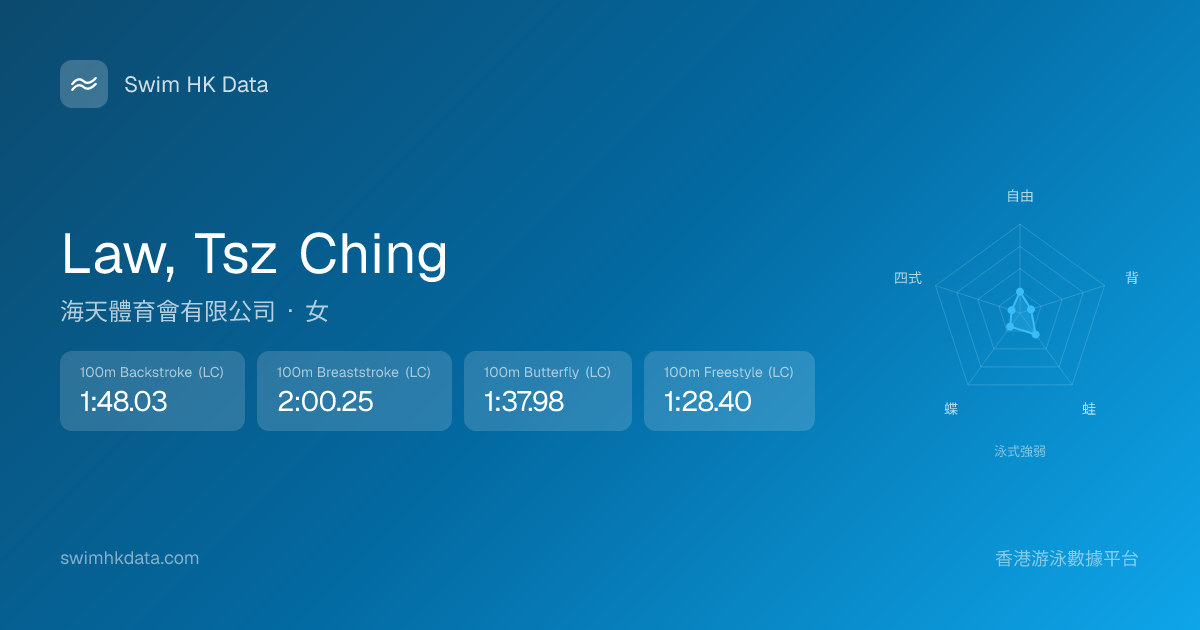 此圖表根據你所有比賽成績計算,顯示你在各泳式的相對強弱,僅供參考。繼續努力,每一次練習都會讓你更快更強!💪