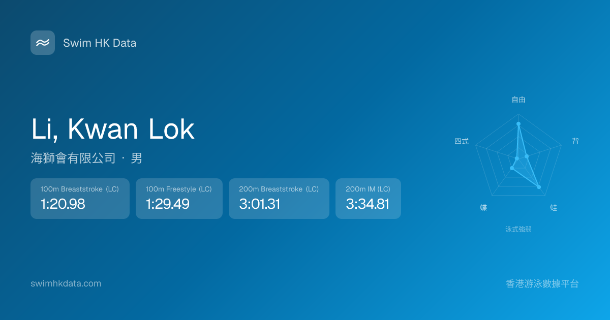 此圖表根據你所有比賽成績計算,顯示你在各泳式的相對強弱,僅供參考。繼續努力,每一次練習都會讓你更快更強!💪