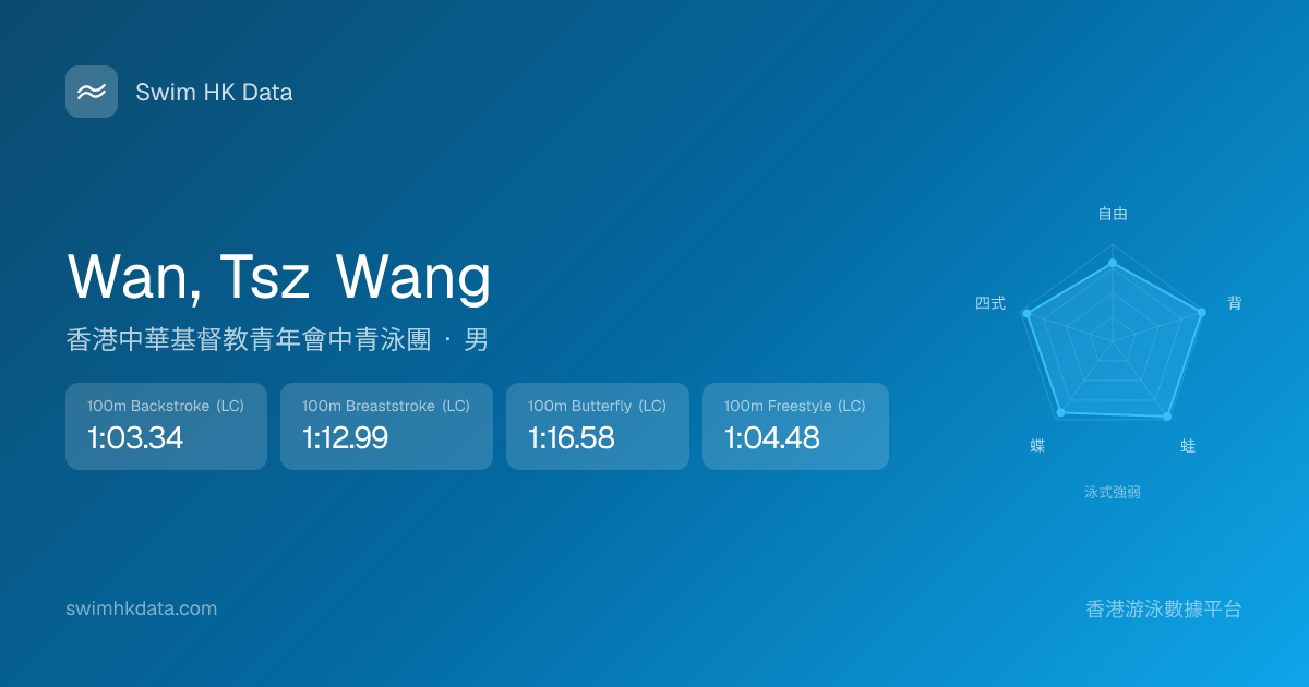 此圖表根據你所有比賽成績計算,顯示你在各泳式的相對強弱,僅供參考。繼續努力,每一次練習都會讓你更快更強!💪