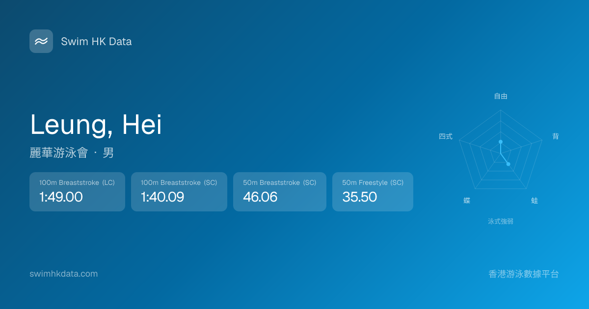 此圖表根據你所有比賽成績計算,顯示你在各泳式的相對強弱,僅供參考。繼續努力,每一次練習都會讓你更快更強!💪