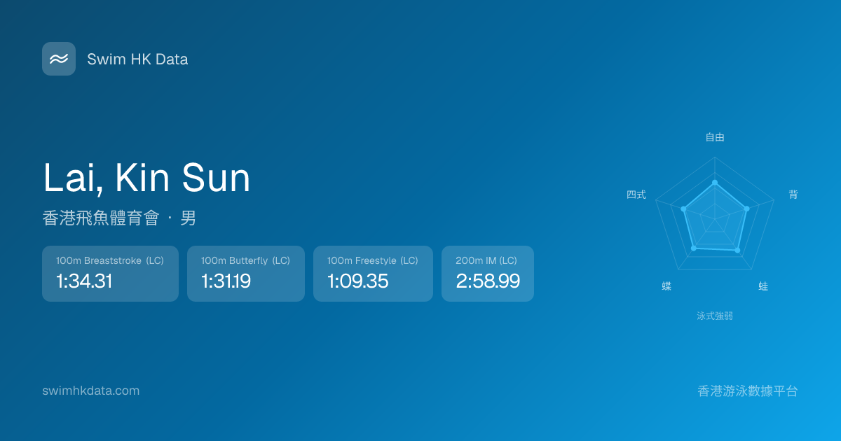 此圖表根據你所有比賽成績計算,顯示你在各泳式的相對強弱,僅供參考。繼續努力,每一次練習都會讓你更快更強!💪