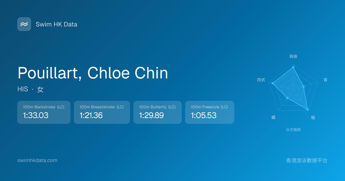 此圖表根據你所有比賽成績計算,顯示你在各泳式的相對強弱,僅供參考。繼續努力,每一次練習都會讓你更快更強!💪