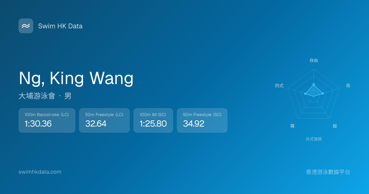此圖表根據你所有比賽成績計算,顯示你在各泳式的相對強弱,僅供參考。繼續努力,每一次練習都會讓你更快更強!💪
