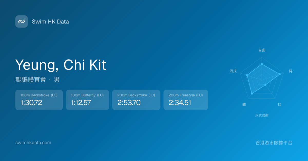 此圖表根據你所有比賽成績計算,顯示你在各泳式的相對強弱,僅供參考。繼續努力,每一次練習都會讓你更快更強!💪