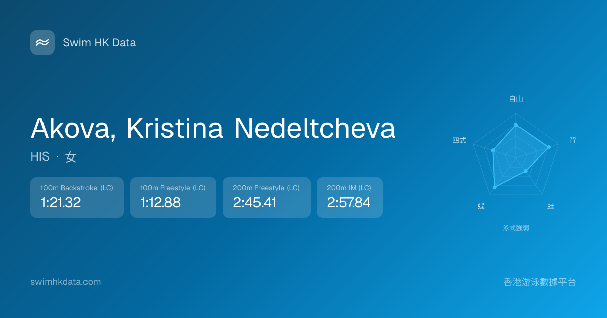 此圖表根據你所有比賽成績計算,顯示你在各泳式的相對強弱,僅供參考。繼續努力,每一次練習都會讓你更快更強!💪